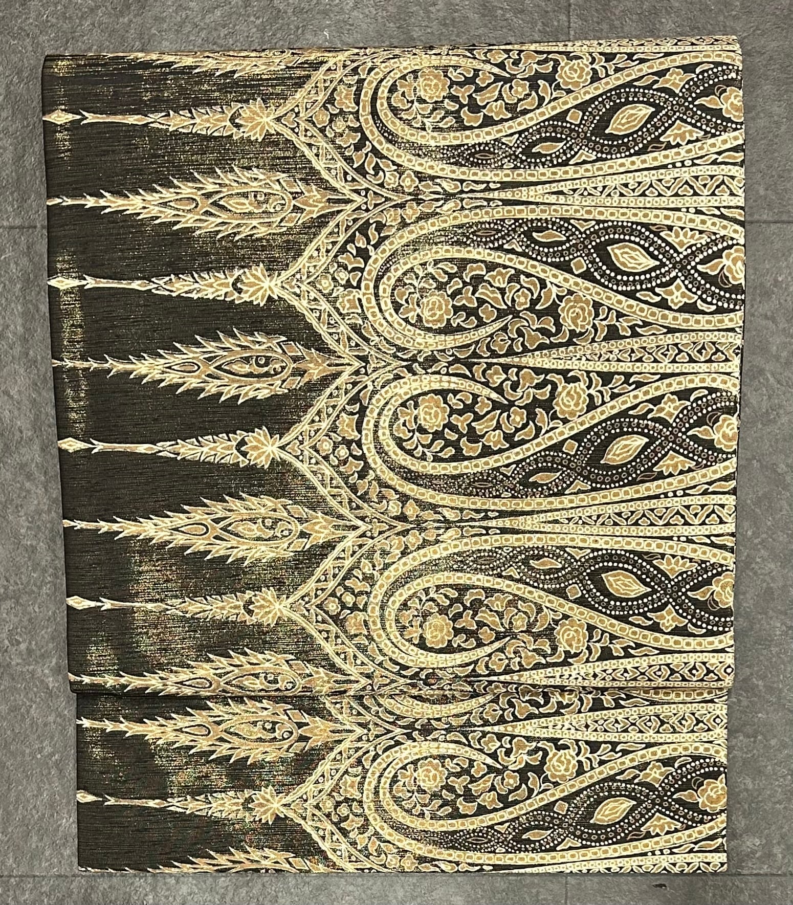 名古屋帯 薄い金糸が入った憲法黒茶色地 長さ372㎝ Q4578
