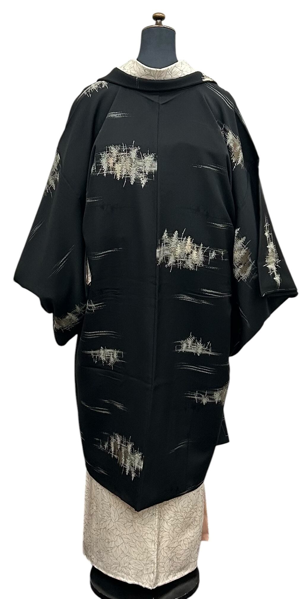 羽織 未使用 しつけ糸有 黒地 抽象柄 裄丈 68.5㎝ K4940