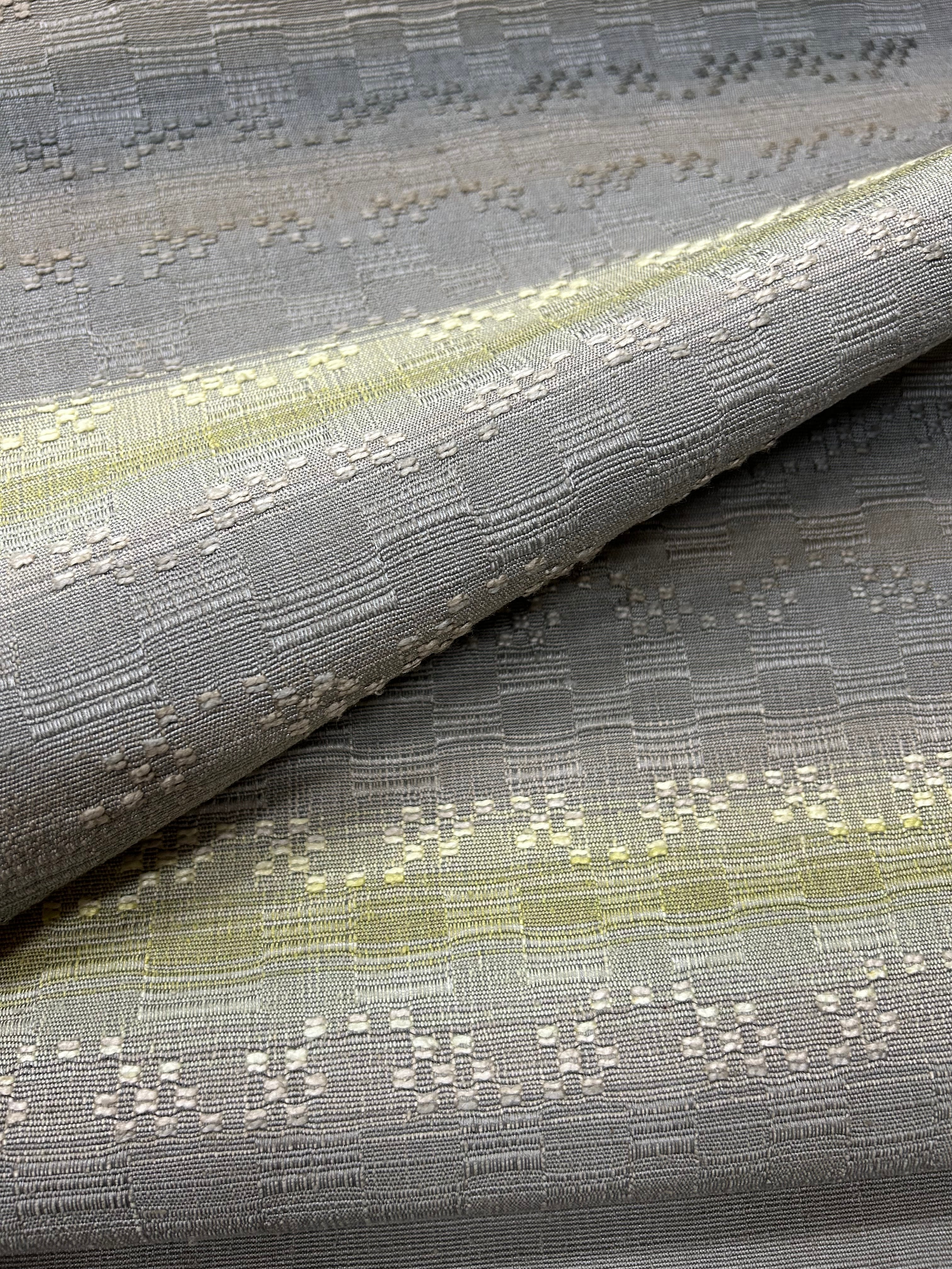 名古屋帯 八寸 未使用 首里織 ロートン織 証紙つき 新島染織工房 グレーに近い利休鼠色などのグラデーション 長さ 366㎝ Q4901